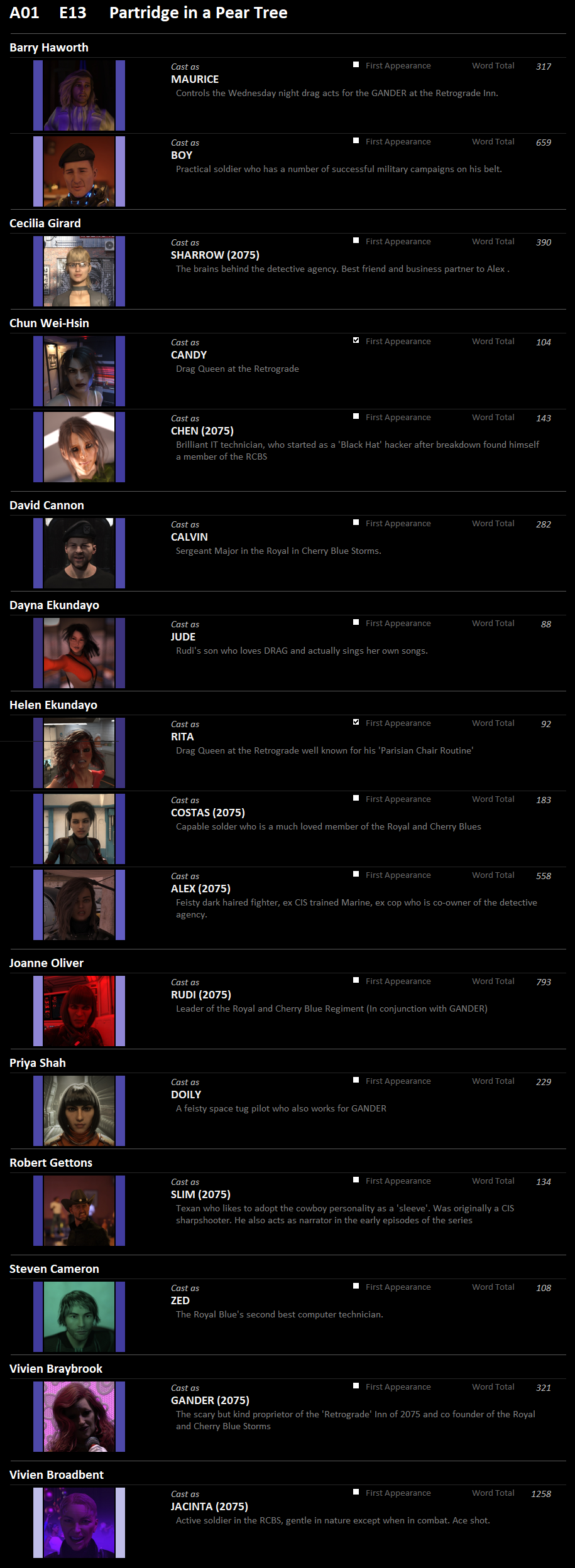 BARRY HAWORTH / CECILIA GIRARD / DAVID CANNON / HELEN EKUNDAYO / JOANNE OLIVER / MELANIE BLIZARD / ROBERT GETTONS / STEVEN CAMERON / VIVIEN BROADBENT / VIVIEN BRAYBROOK/ DAYNA EKUNDAYO